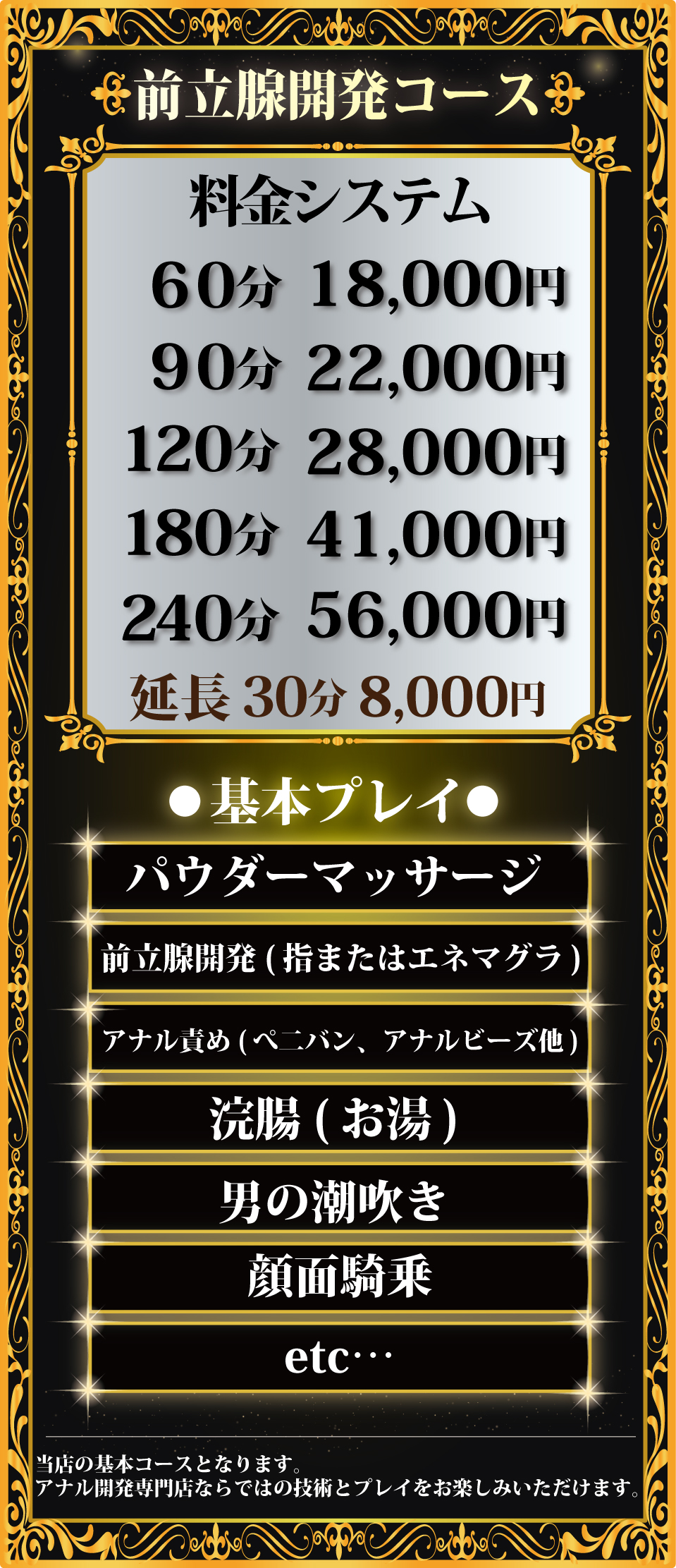 ※24:00を回るプレイ時間の場合は2000円の深夜料金が加算されます。